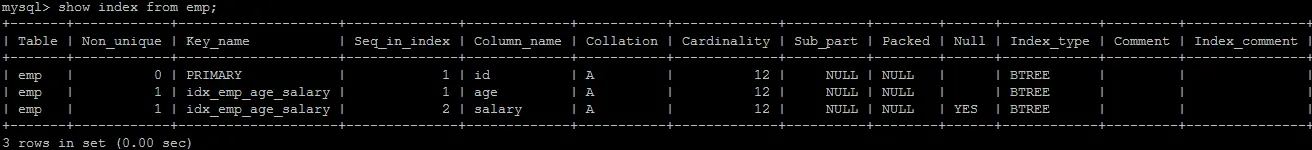create index idx_emp_age_salary on emp(age,salary);