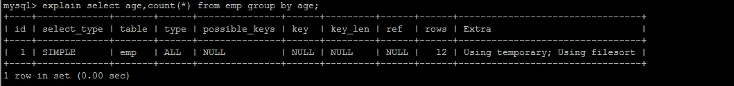 explain select age,count(*) from emp group by age;