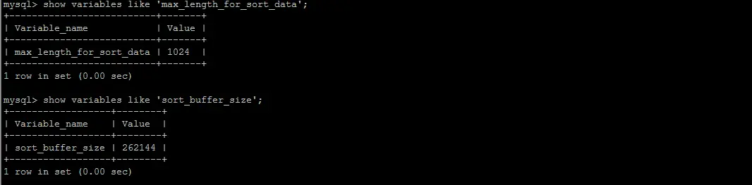 MySQL 通过比较系统变量 max_length_for_sort_data 的大小和Query语句取出的字段总大小, 来判定是否那种排序算法,如果max_length_for_sort_data 更大,那么使用第二种优化之后的算法;否则使用第一种。