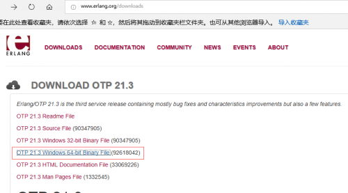 下载最新版是otp_win64_21.3,需要其他版本或者32位系统的,可以去官网下载。