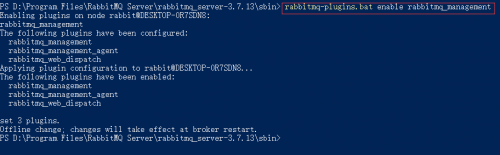 "D:\Program Files\RabbitMQ Server\rabbitmq_server-3.7.14\sbin\rabbitmq-plugins.bat" enable rabbitmq_management