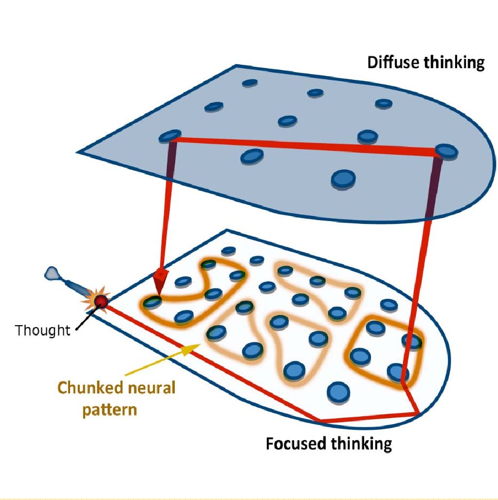 一个人如果掌握许多 Chunk,就好比他的大脑里面储存了许多有用的神经回路。这样在遇到新问题时他就有很大概率能够直接调出正确的解决方案。在这里 Diffuse Mode 起了很大的作用。