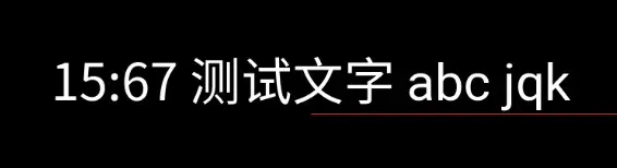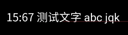 canvas.drawText("15:67 测试文字 abc jqk", 0f, 0f, mPaint)