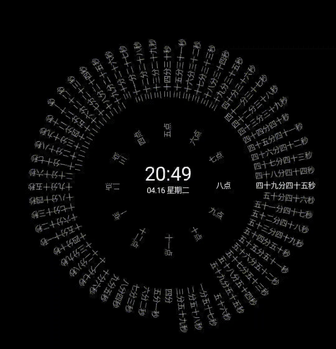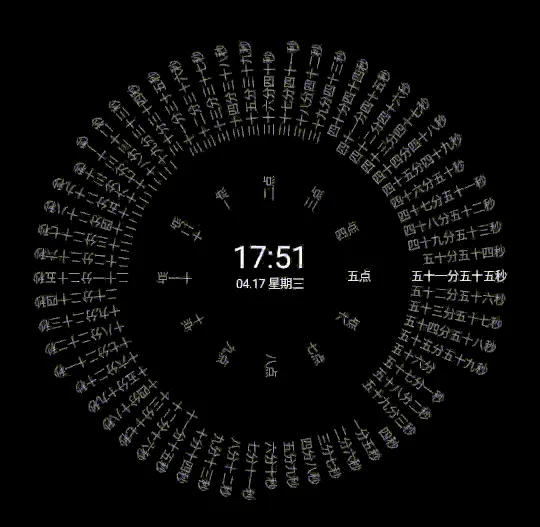 - 「秒圈」一圈文字秒,一秒、二秒..五十九秒,六十秒显示为空,也是同理。