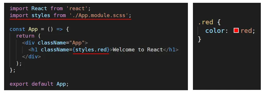 CSS Modules 可以把 css 作用域收敛,可以显式声明哪个 class 样式作用于 dom 上,可以保证某个组件的样式不会影响到其他组件: