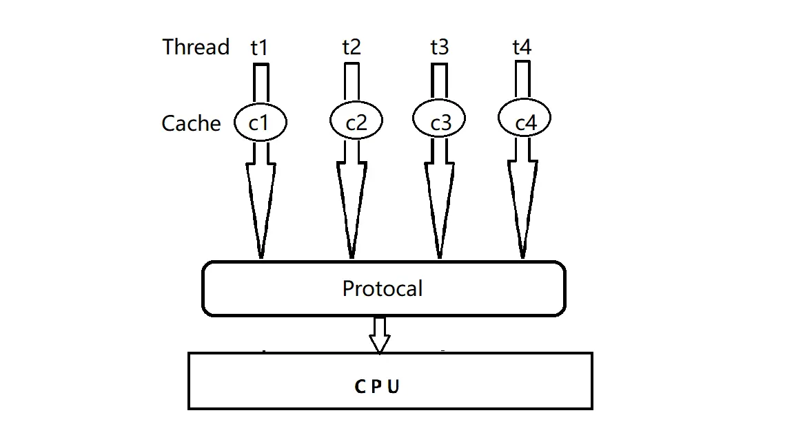 其中protocal协议是为了保证多个进程访问cpu主内存时,多个缓存与主内存数据一致性。