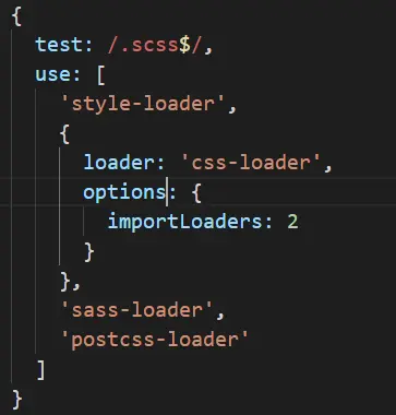 importLoaders:2 的意思是:引入的scss文件也要进行postcss-loader和sass-loader的过程。