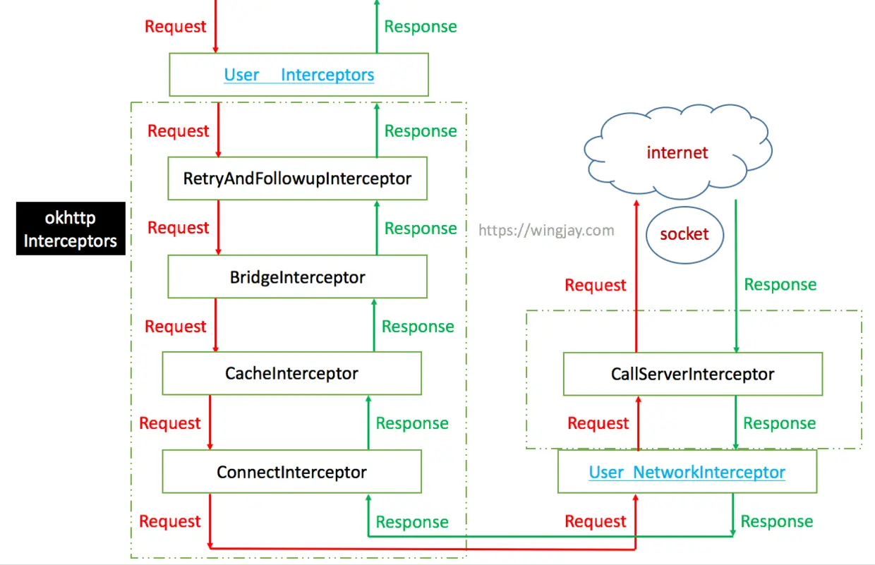 WingjayHttpClient的职责定义为,接收一个call,内部进行处理后返回结果。这就是WingjayHttpClient的任务,那么具体如何去管理这些request的执行顺序和生命周期,自然不需要由它来管。