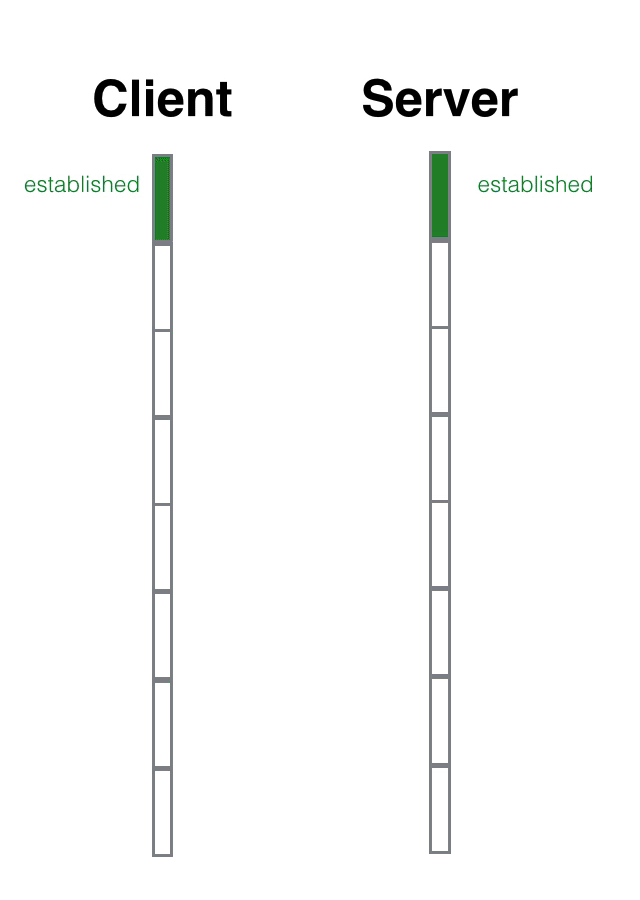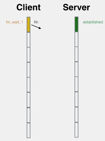 我们看到有两个中间状态,syn_sent和syn_rcvd,这两个状态叫着「半打开」状态,就是向对方招手了,但是还没来得及看到对方的点头微笑。syn_sent是主动打开方的「半打开」状态,syn_rcvd是被动打开方的「半打开」状态。客户端是主动打开方,服务器是被动打开方。