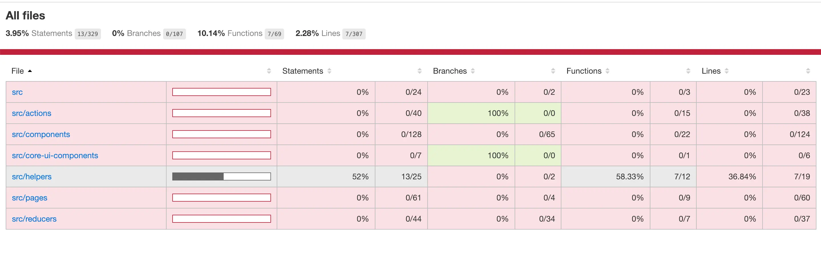当开发运行npm run test或git push时会运行测试以及统计测试覆盖率。同时项目目录reports/index.html可查看测试覆盖率的report. 如果测试覆盖率没有达到配置的百分比,则push会失败。