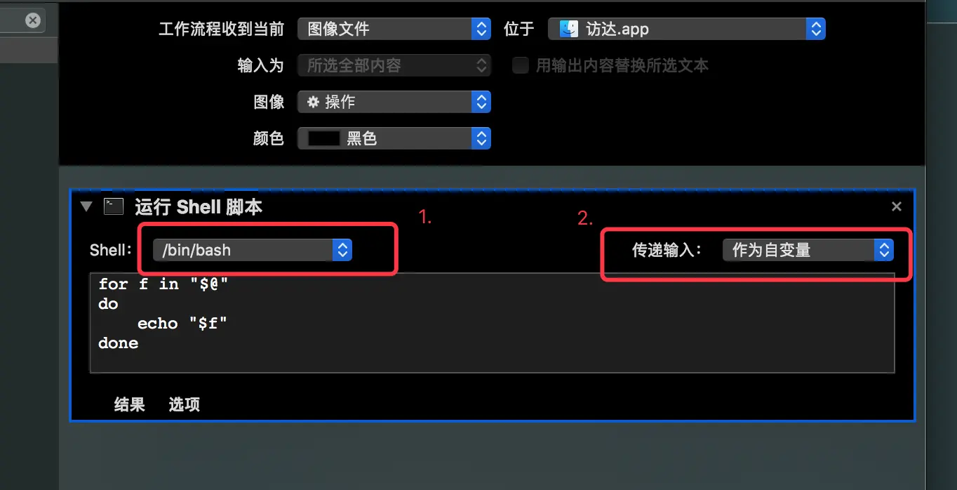 其中macOS的快捷操作里,是通过"$@"来作为参数传递的。
