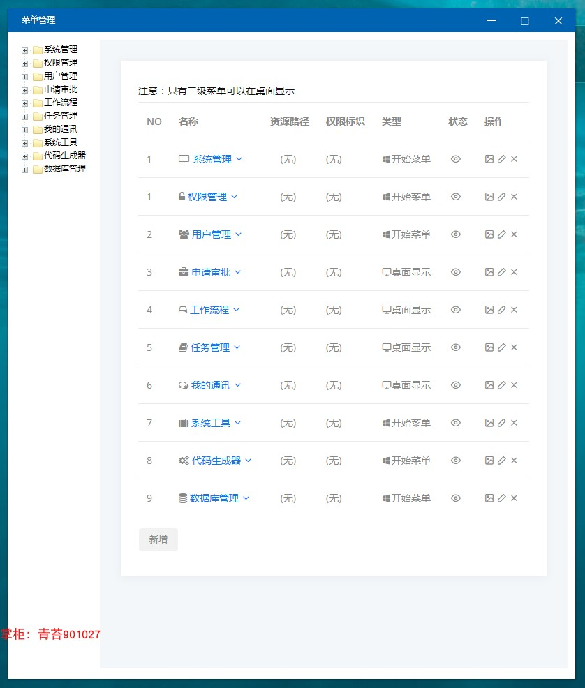 . 菜单管理:N级别自定义菜单,选择菜单图标,菜单状态显示隐藏4