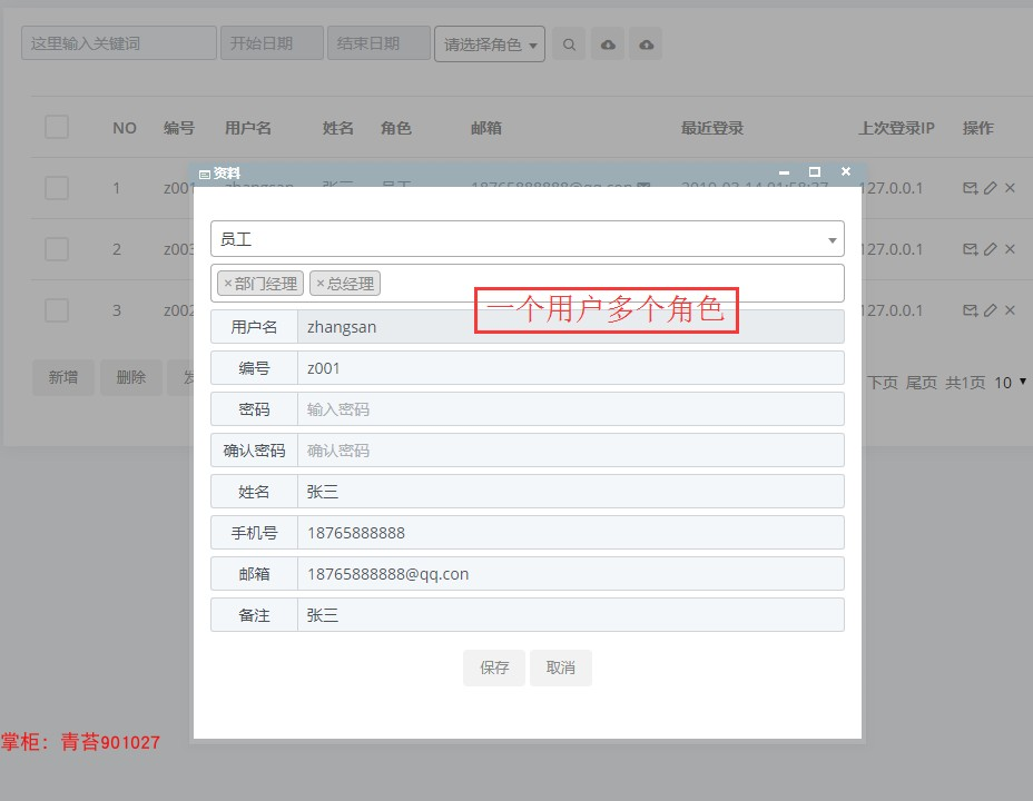支持多用户分权限管理后台, 权限具体到不同的菜单不同的按钮