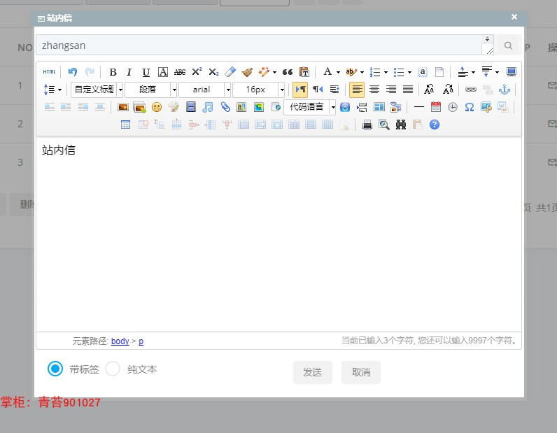 . 站内信:收信箱和发信箱,websocket技术通讯技术做的及时收信提醒,可配置语音提示来信13.