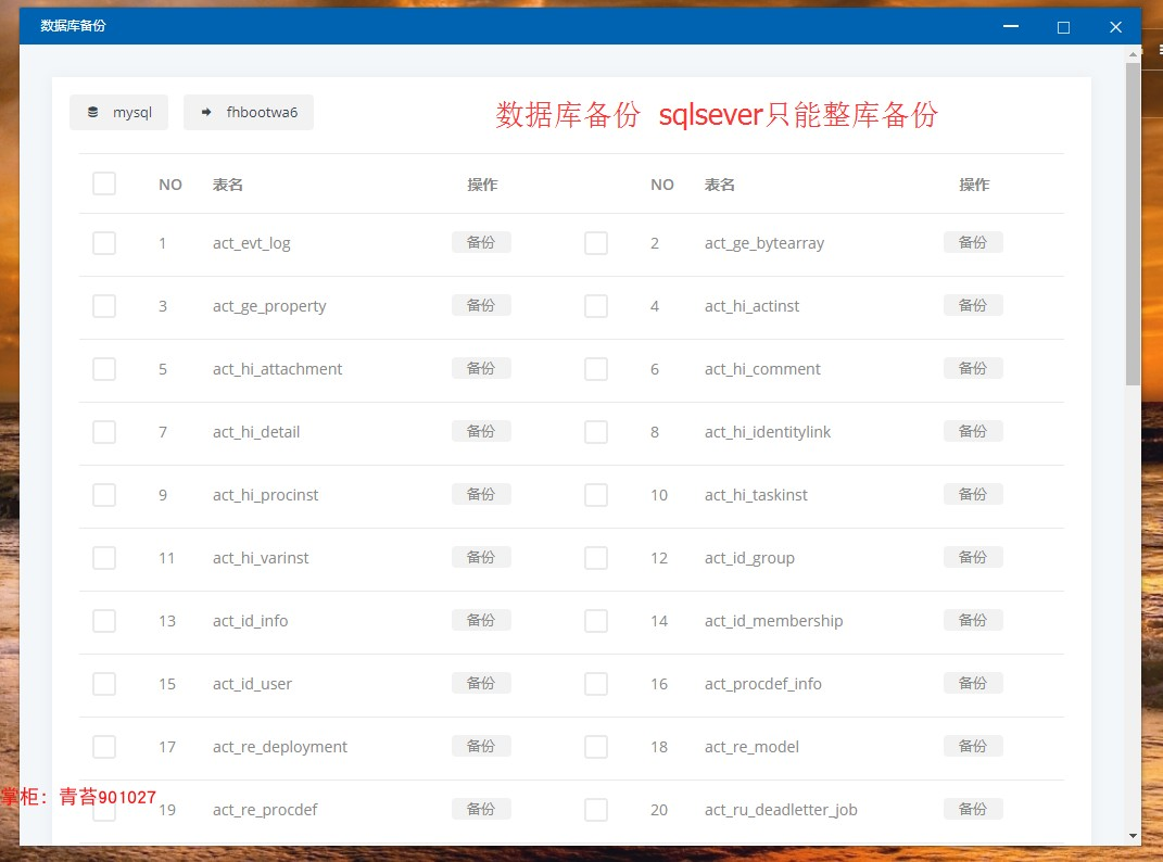 . 数据库备份:可备份单表(sqlserver不支持)、整库,支持本地和远程备份17