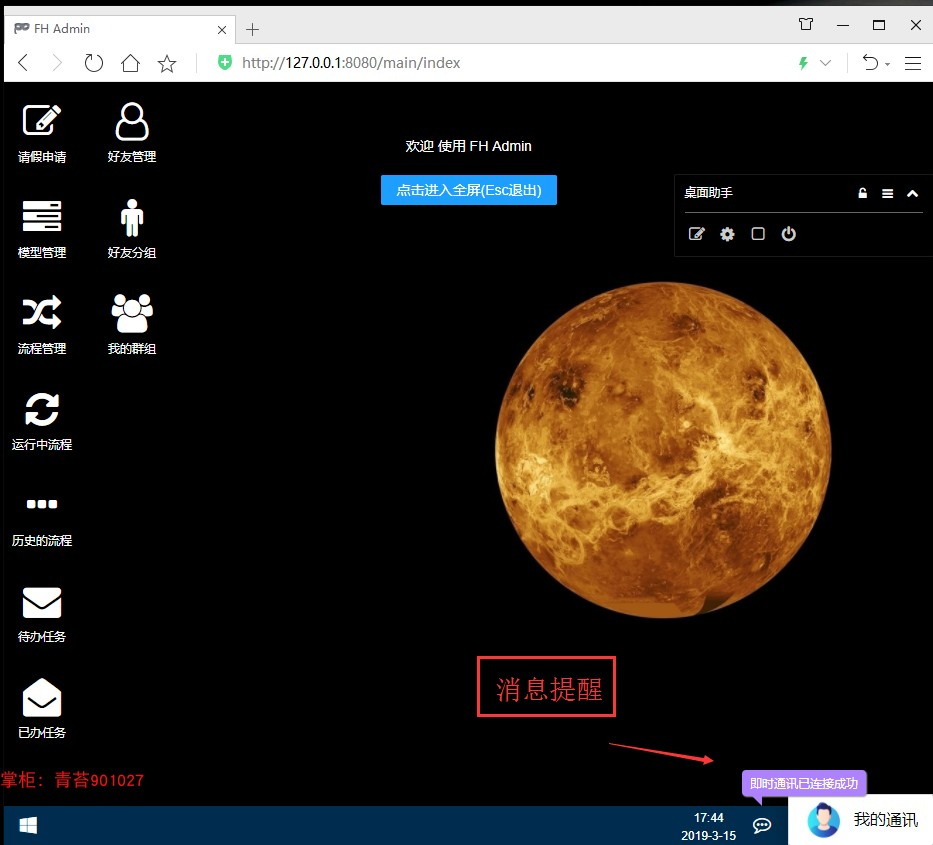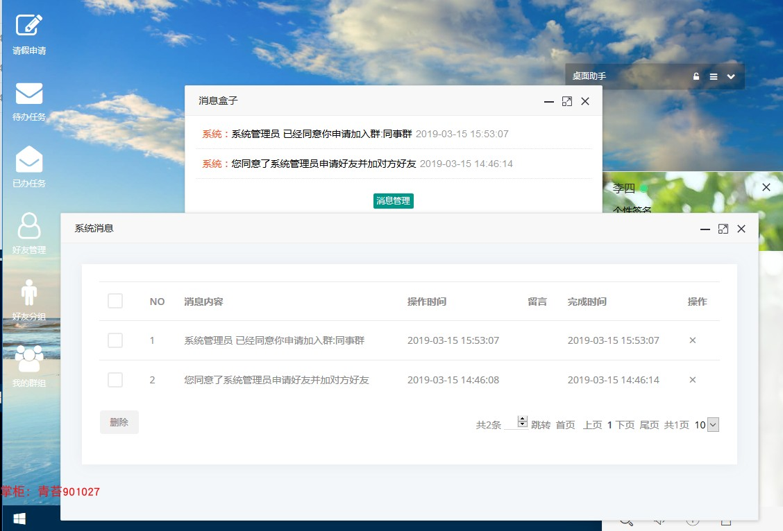 注:当办理完当前任务时,下一任务待办人会即时通讯收到新任务消息提醒,当作废和完结任务时,