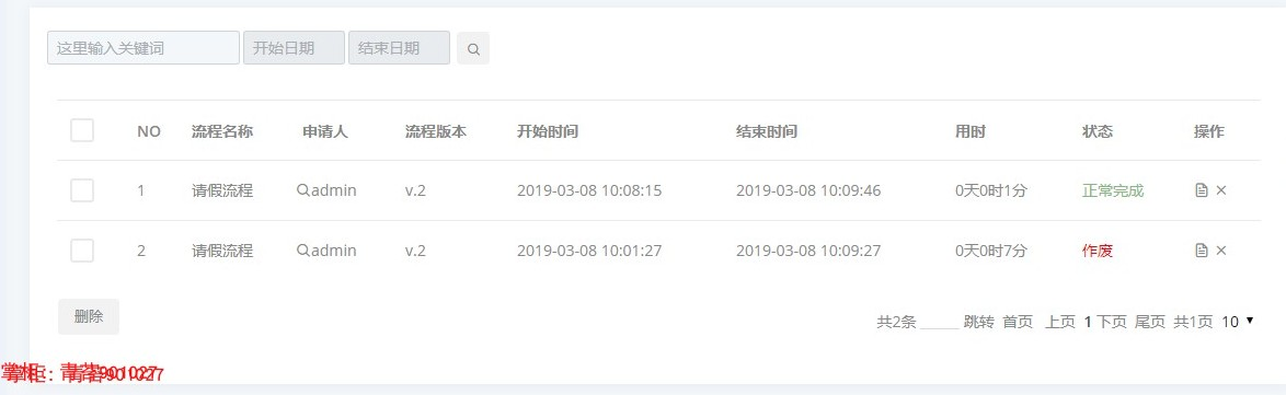 6.已办任务 :查看自己办理过的任务以及流程信息、流程图、流程状态(作废 驳回 正常完成)