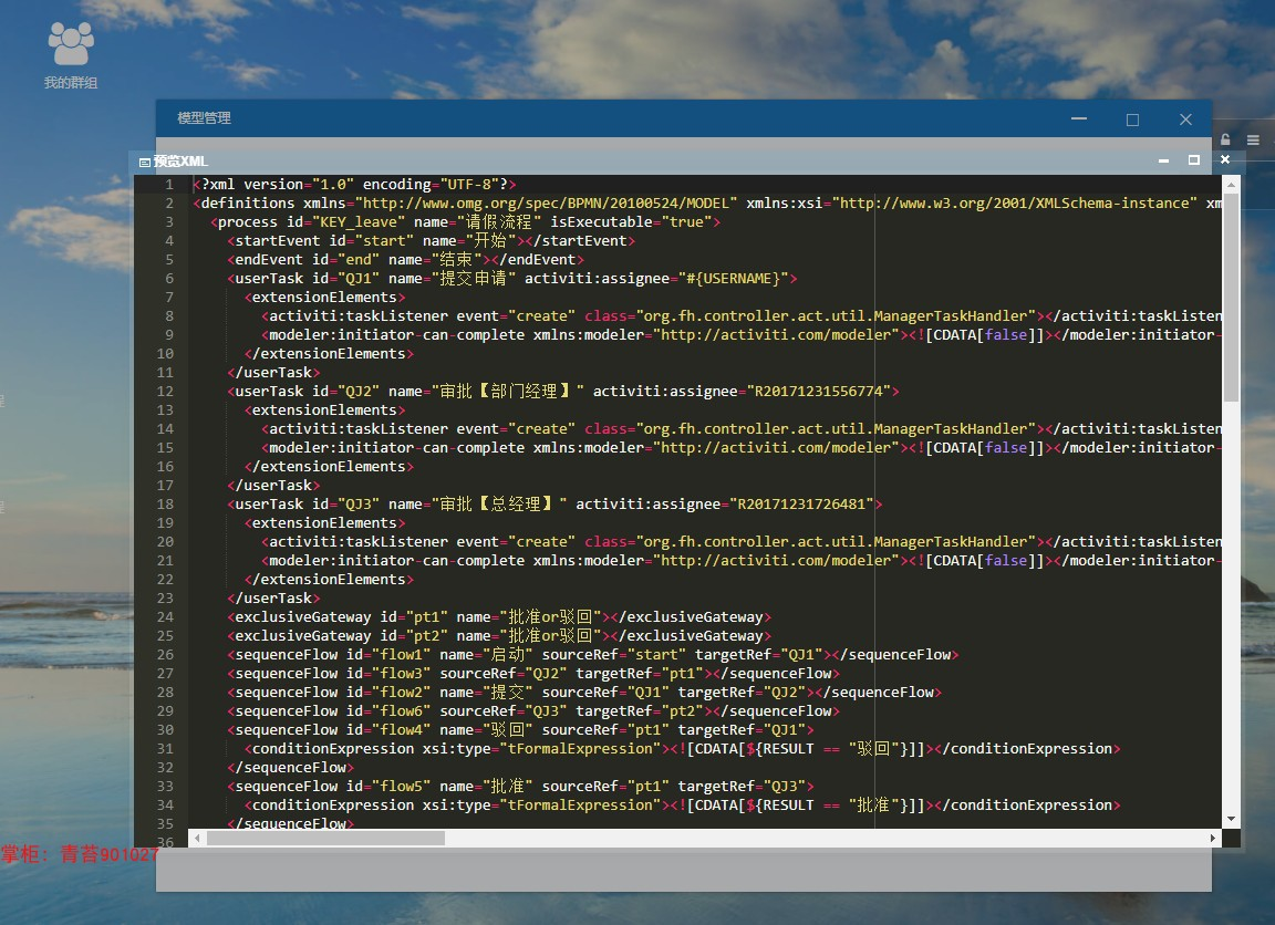 1.模型管理 :web在线流程设计器、预览流程xml、导出xml、部署流程