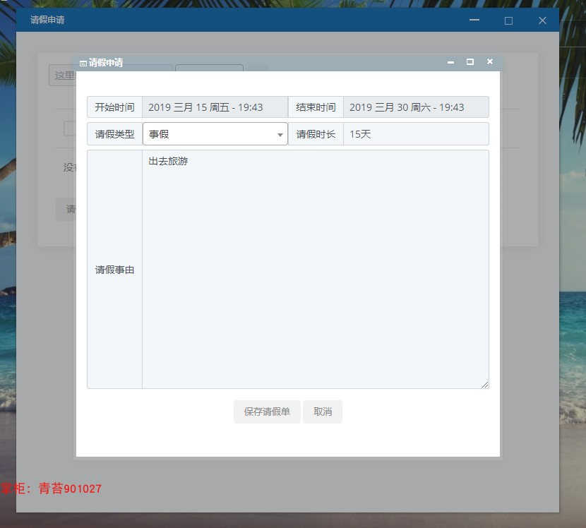 . 请假申请:添加请假单,走工作流请假模型流程