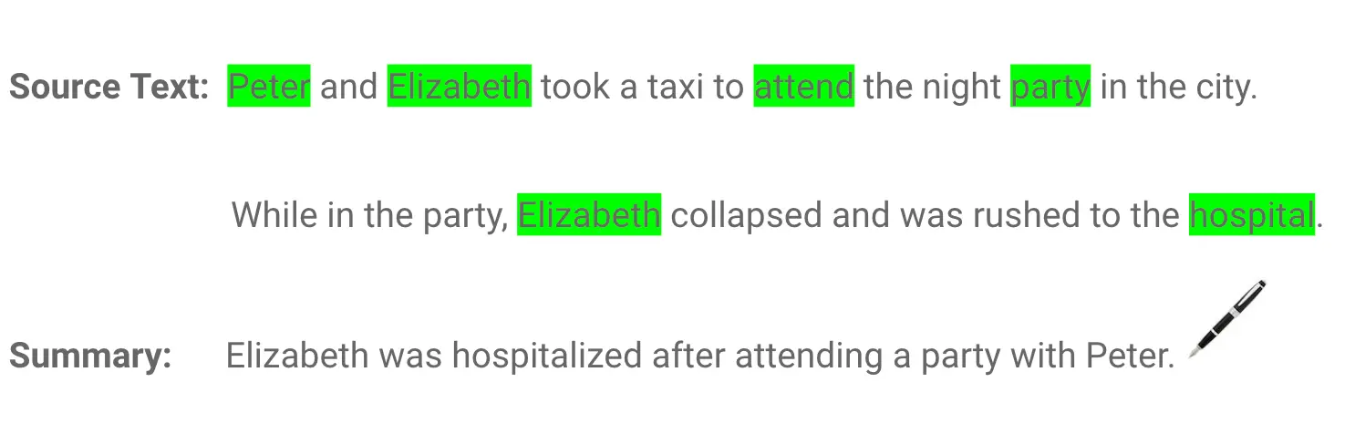 In extraction-based summarization, a subset of words that represent the most important points is pulled from a piece of text and combined to make a summary. Think of it as a highlighter—which selects the main information from a source text.