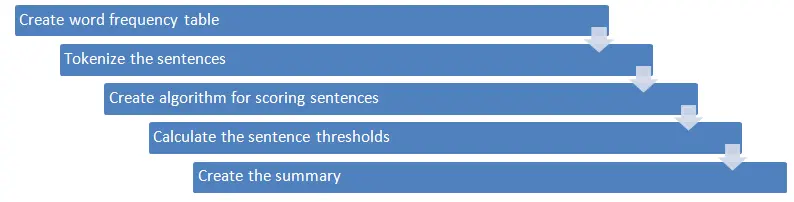 Different types of algorithms and methods can be used to gauge the weights of the sentences and then rank them according to their relevance and similarity with one another—and further joining them to generate a summary. Here's an example: