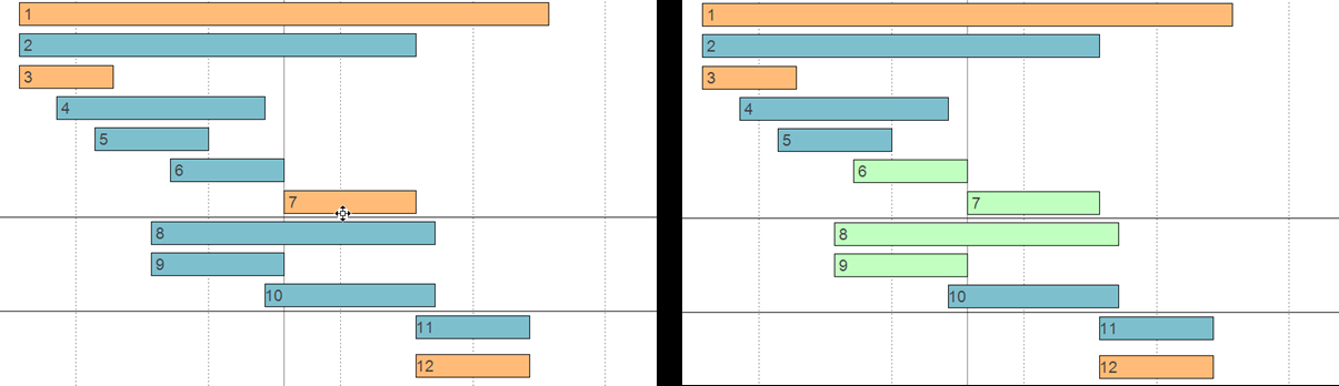 然而,在几乎任何情况下,甘特图都不像上面那样简单。通常,要标记的元素有自己的颜色来表示特定的语义。然后标记颜色将隐藏“语义颜色”。因此,用户可能会丢失关于标记元素的重要信息。