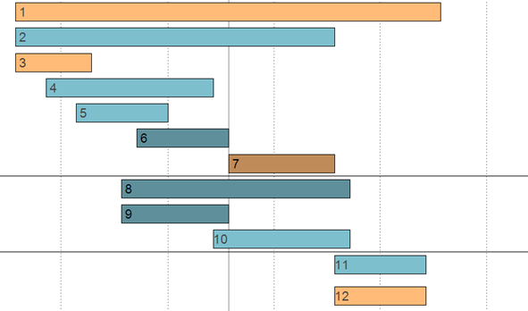 - 颜色还可以用来定义甘特图的语义。因此,它们帮助用户更快地理解甘特图所呈现的完整且常常复杂的现实。