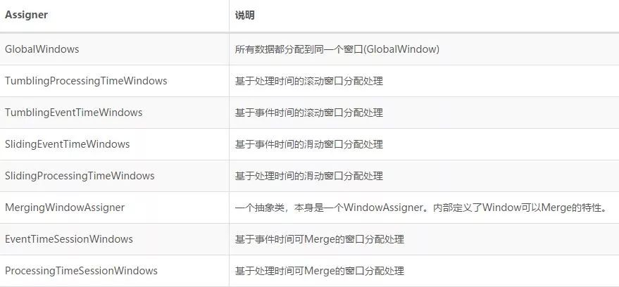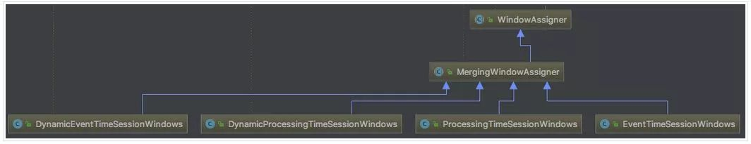 }Flink针对不同窗口类型实现了相应的WindowAssigner。Flink 1.7.0继承关系如下图