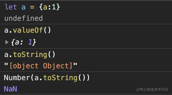 b.valueOf() // 如果不是原始类型,valueOf(b.valueOf())。如果b.valueOf()返回的不是原始类型那么报错