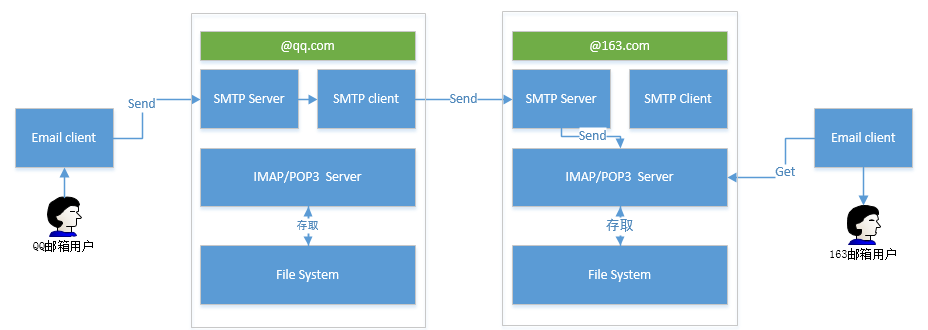 假设从qq邮箱发一封邮件到163邮箱,大致步骤如下