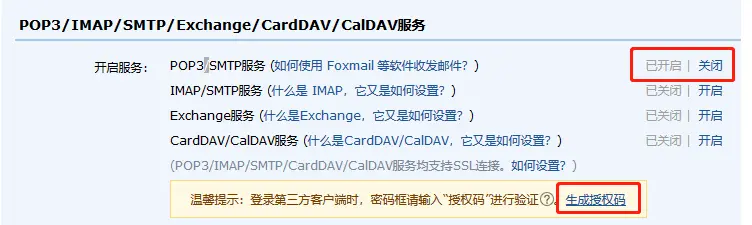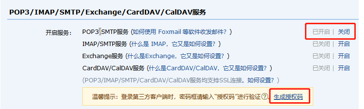 - 在QQ邮箱用开启 POP3/SMTP服务(默认关闭),在设置-->账户中可以查看