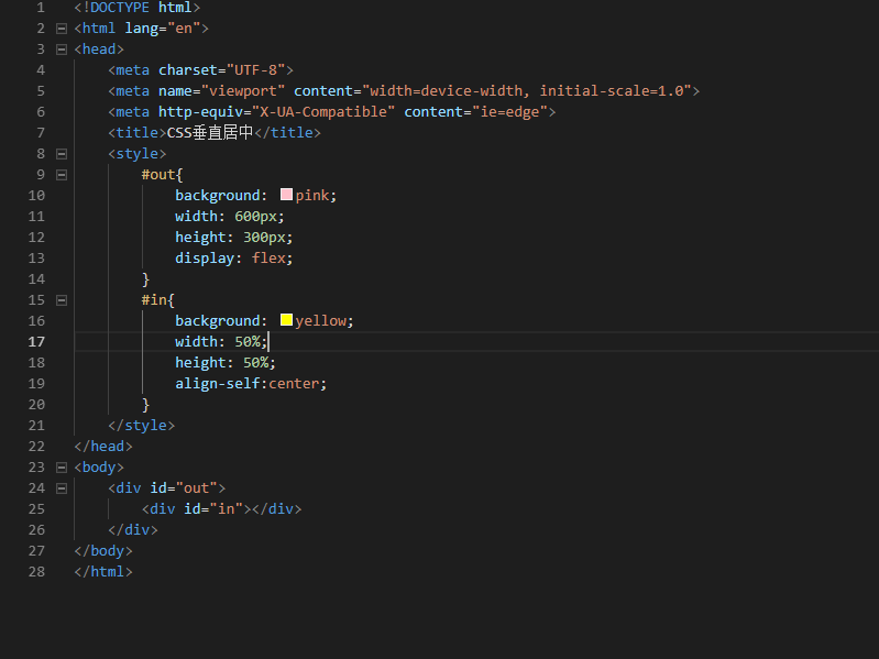 通过display:flex实现CSS垂直居中的方法是给父元素display:flex;而子元素align-self:center;