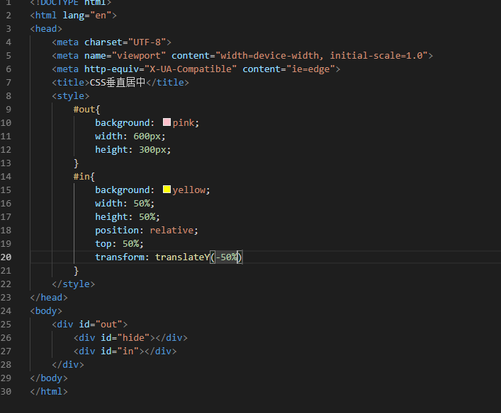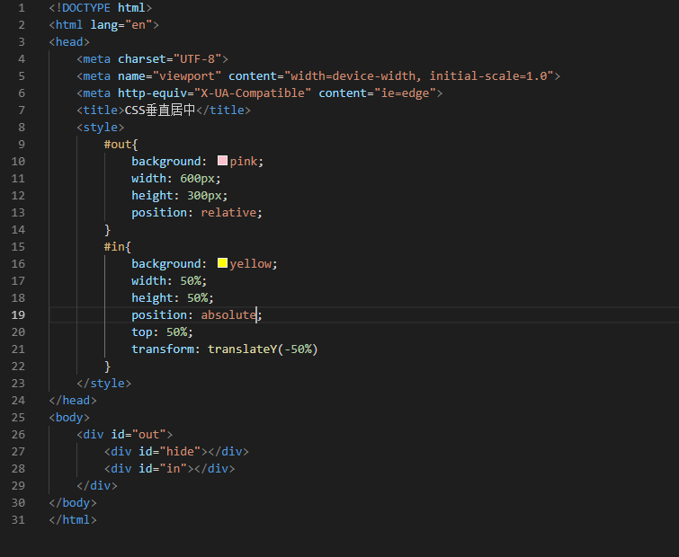 先给父元素position:relative,再给子元素position:absolute,通过translateY即可定位到垂直居中的位置