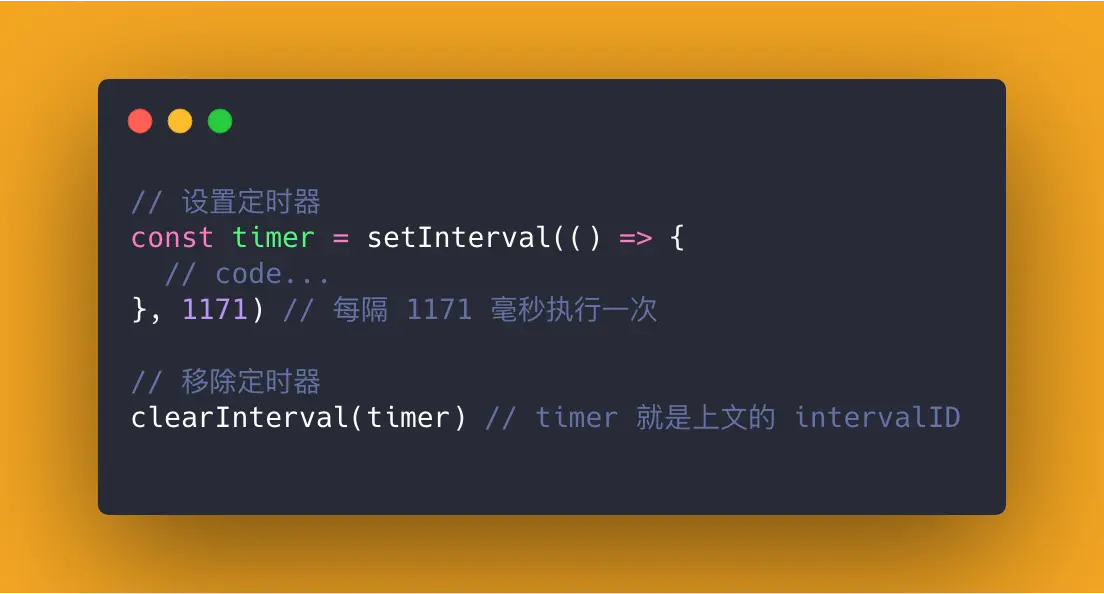 const timer = setInterval(() => {