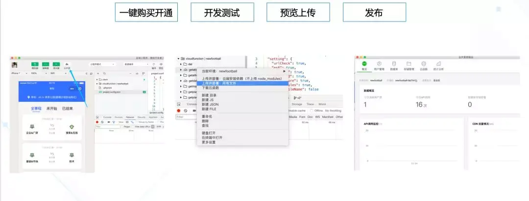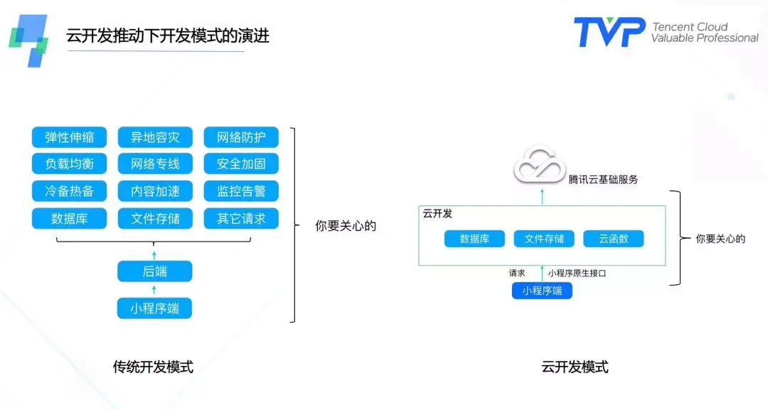 云开发,是腾讯云和微信团队联合开发的,集成于小程序开发者工具(IDE)的原生serverless云服务。它进一步降低小程序开发门槛,让前端可以包办小程序开发,提升开发效率,像调用API一样便捷,用户其实完全不用担心哪些是服务器的逻辑,他们都去向了哪里,只需要像前端函数一样去理解就可以。