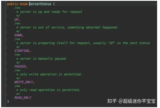 Nacos增加了对Server状态的控制,所有的状态都定义在com.alibaba.nacos.naming.cluster.ServerStatus类里。