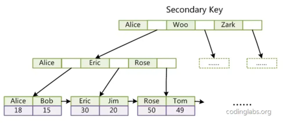 这里以英文字符的ASCII码作为比较准则。聚集索引这种实现方式使得按主键的搜索十分高效,但是辅助索引搜索需要检索两遍索引:首先检索辅助索引获得主键,然后用主键到主索引中检索获得记录。