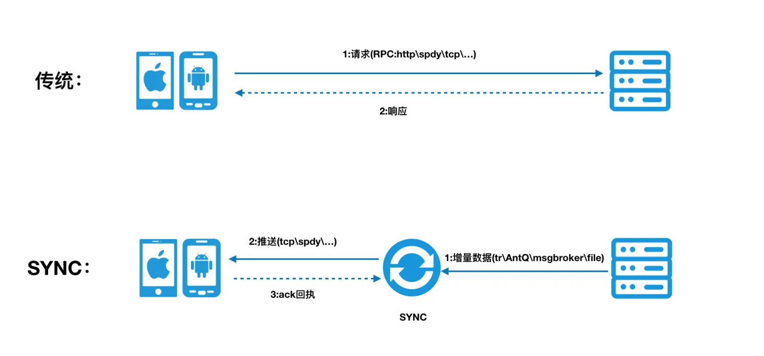 - 通过一个安全的数据通道 TCP+SSL,及时、准确、有序地将服务器端的业务数据,主动的同步(SYNC)到客户端 App,可被定义为:一个客户端与服务端之间的可靠消息中间件。