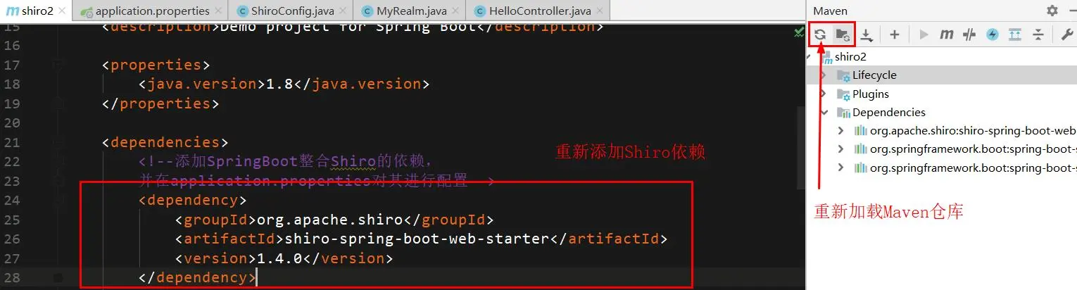 1、可以尝试先把刚刚你加入的Shiro依赖注销掉,然后刷新Maven仓库: