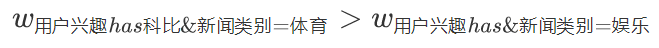 将用户的兴趣与待估新闻的类别进行组合,得到一个interact特征,假如用户喜欢看科比相关的新闻,则待排新闻为体育类别的新闻应该比娱乐类别的新闻的值应该更高,因此我们能构造出特征用户喜欢科比且待排新闻为体育类 ,并且通过业务理解,我们能知道这个特征一定比用户喜欢科比且待排新闻为娱乐类 在LR模型中得到的权重高。