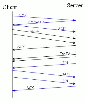上图中,客户端首先发送SYN数据包,然后服务器发送SYN+ACK数据包,最后客户端发送ACK数据包,接下来就可以发送内容了。这三个数据包的发送过程,叫做TCP握手。