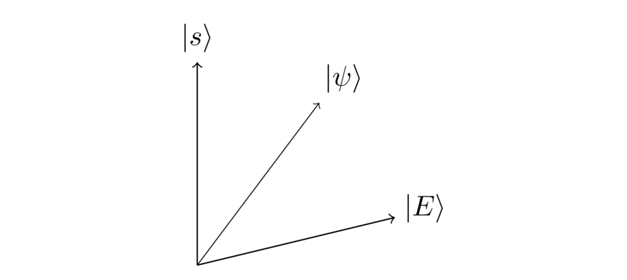Of course, this is just a guess as to how we might start out. In fact – spoiler alert! – we’ll eventually find that starting in pretty much any superposition state works. But the equal superposition ∣ E ⟩ |E\rangle∣E⟩ is easy to prepare, and turns out to work well. It’s got the additional bonus that this state turns up in lots of quantum algorithms, so it’s good to get comfortable with it.