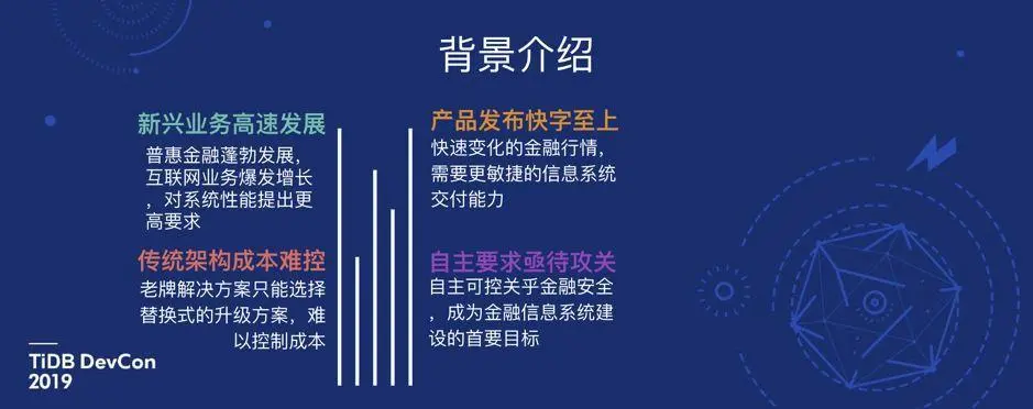 本文整理自于振华老师在 TiDB DevCon 2019 上的演讲实录,演讲主题为《TiDB 在银行核心金融领域的研究与实践》。