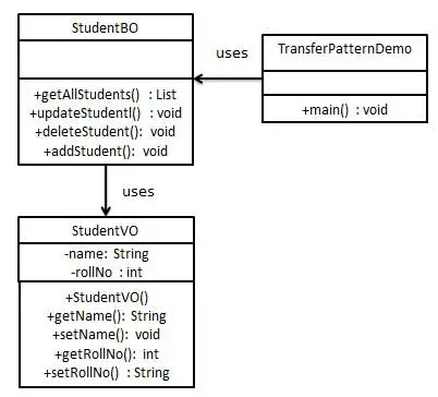 使用 StudentBO 来演示传输对象设计模式。