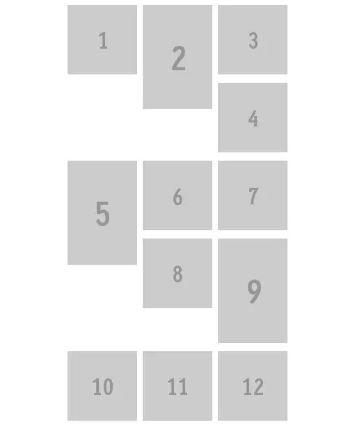 在我们之前的例子中,数字2的图片把行的高度撑开了,以至于在数字3图片之后仍然有一些垂直的空间使得数字4图片挤了进去。即使是考虑到这些规则,这种模式也不容易被预测到。