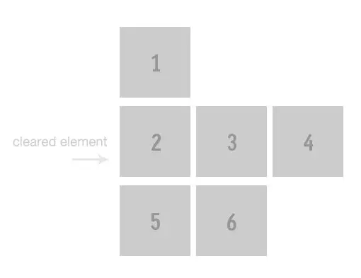 }这段代码告诉浏览器,第二项的顶部必须位于他之前的任意左浮动项的底部之下(在这个例子中,是第一项)。如果我们将所有元素都右浮动,我们就要使用clear: right。