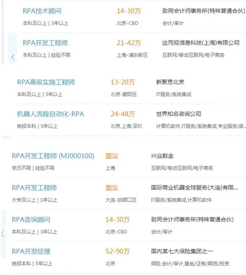 不仅是美国,目前,我国RPA市场前景广阔,大量企业急需部署RPA以优化流程,提高生产力。RPA技术人员(包括RPA开发、测试人员等)的需求量必将猛增,RPA从业人员的薪酬也将水涨船高。