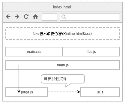 ③ fake页技术,将页面最初需要显示Html&Css内联,在页面所需资源加载结束前至少可看,理想情况是index.html下载结束即展示(2G 5S内)