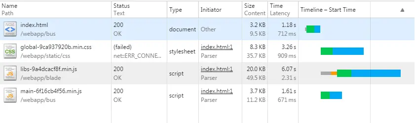 这里如果追求极致,libs.js、main.css与main.js可以选择合并,划分结束后便可以决定静态资源缓存策略了。