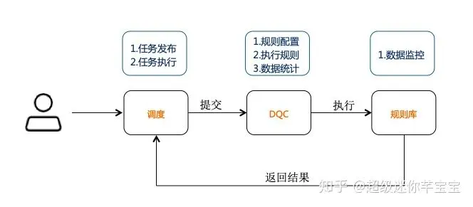 由上图我们看出DQC主要是通过配置数据质量校验规则,自动在数据处理过程中进行数据质量监控。DQC能监控数据质量并报警,本身不对数据产出进行处理,需要报警接收人判断并决定如何处理。